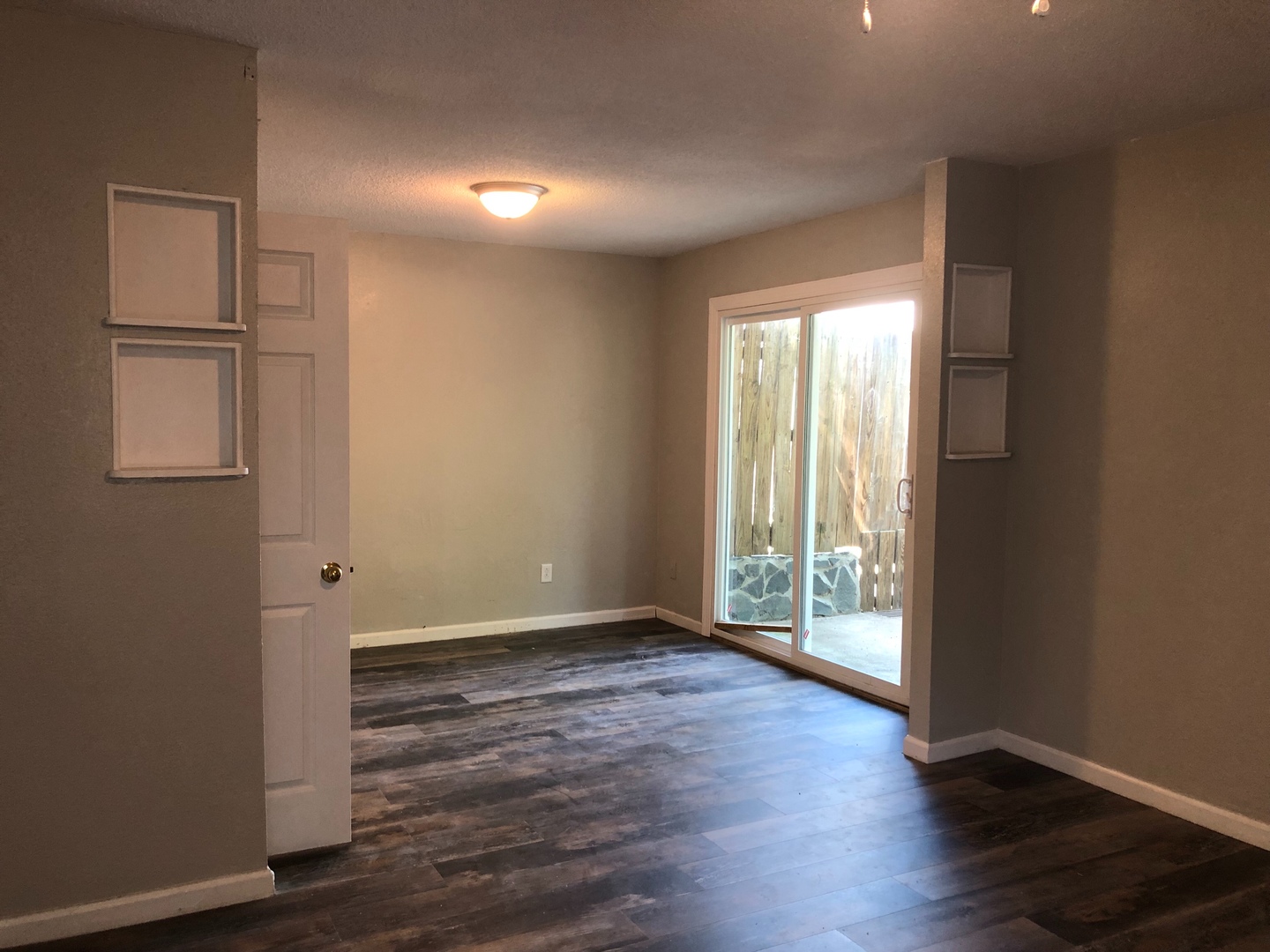 This adorable 1,056 sq. ft., 2 Bedroom/2 Bathroom is tucked away in the corner of a cul-de-sac in Courtyards by Shoreline neighborhood. This house features a family room that has a stone fireplace making this the perfect area to relax in. There is a dining room area that leads to a kitchen with tile counters and plenty of cabinet space. Down the hall you will find the tiled guest bathroom and the guest bedroom with a built in dresser. The spacious master suit is complete with sliding glass doors that lead you to the backyard.